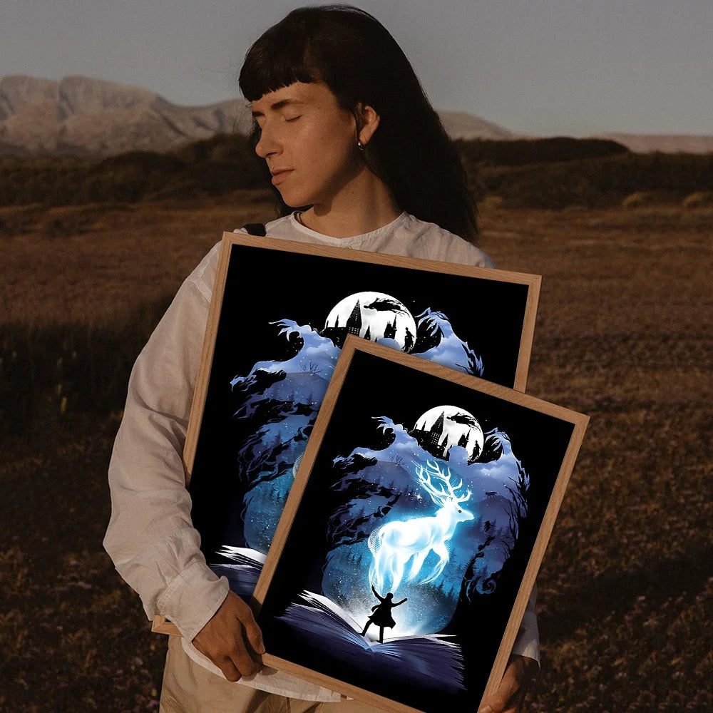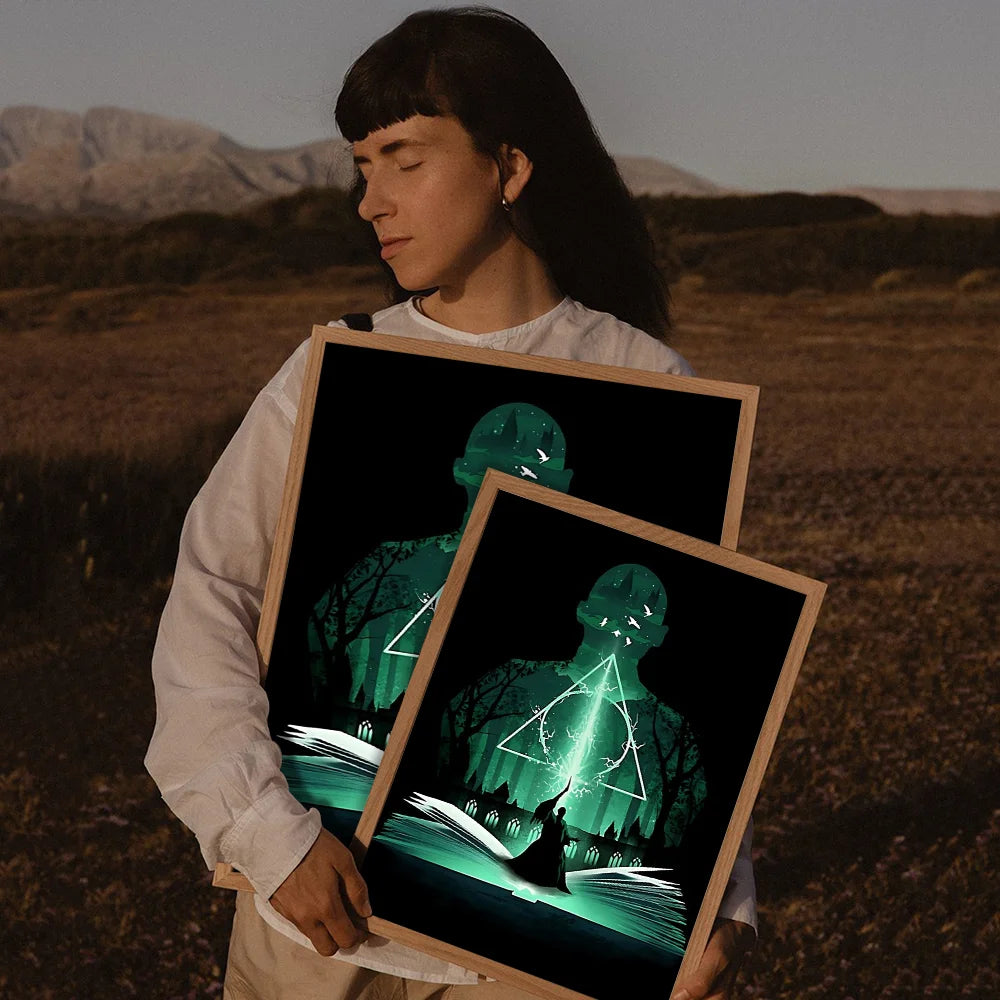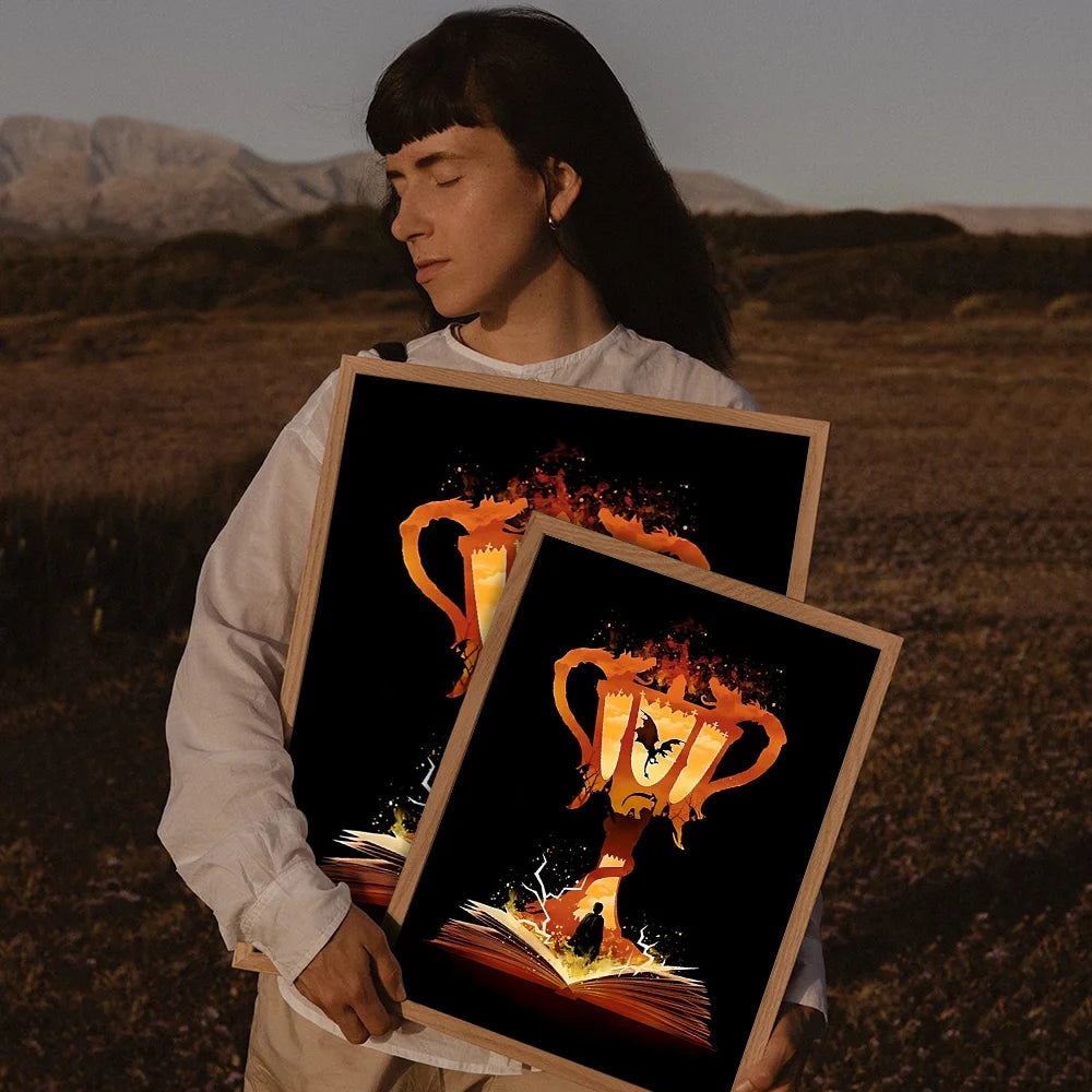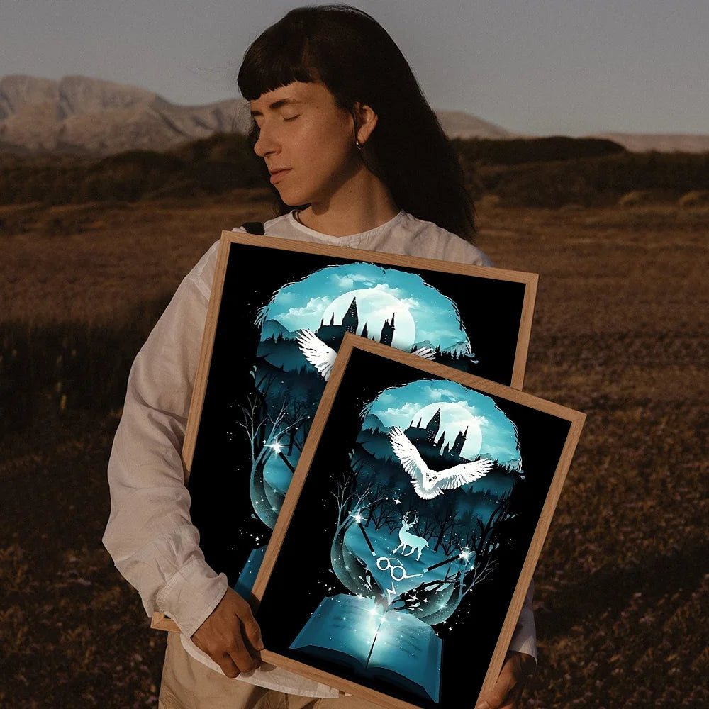 Movie-inspired design: Showcases landscapes, wand scenes, or character silhouettes from the Harry Potter universe