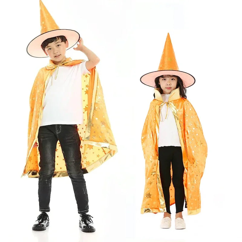 Kids Magician Wizard Cloak & Hat Set – Starry Cosplay Costume for Boys & Girls